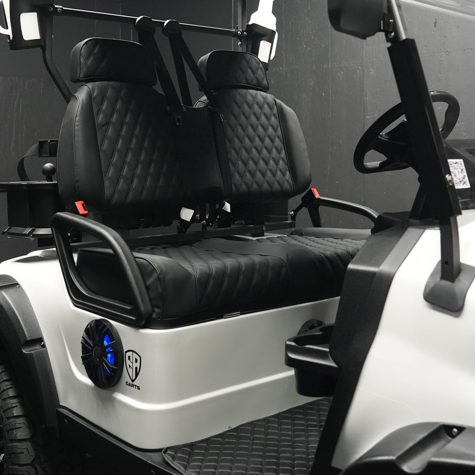 With CarPlay, wireless charging, built-in GPS, and 12” x comp tires, this 2-seater cart rides like a luxury machine but is engineered for golf.